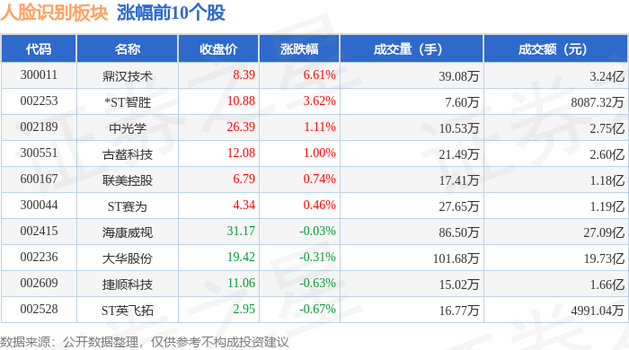 点击次数: 南宫NG28证券之星消息,8月29日人脸识别板块较上一交易日下跌1.17%,中电鑫龙领跌。当日上证指数报收于3857.93,上涨0.37%。深证成指报收于12696.15,上涨0.99%。人脸识别板块个股涨跌见下表: