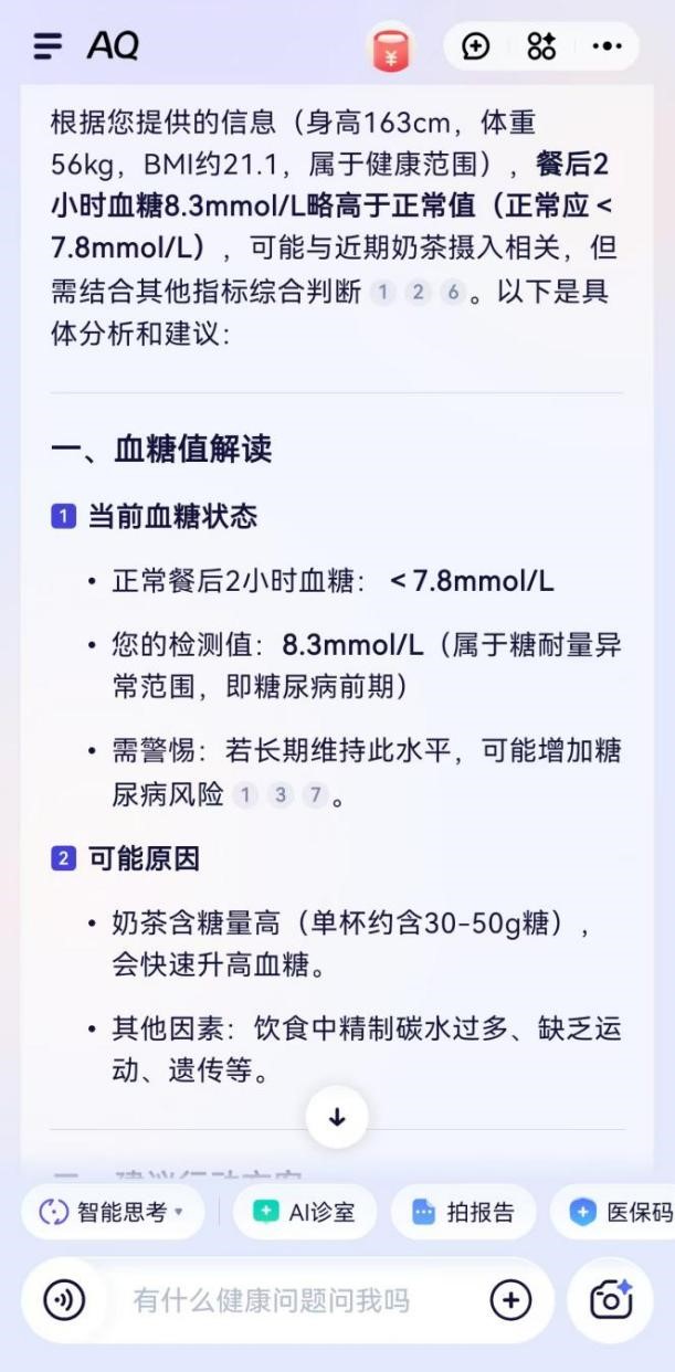 根据AQ发布的数据显示,最近半个月,血糖相关咨询量激增41%。AQ也提醒,0元购奶茶虽香,但不可贪杯,普通成年人每天饮用不超过1杯,且不建议天天喝,特殊人群更需谨慎。