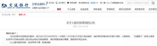 回归到本案中,2020年9月,眼神科技宣布中标交行人脸识别项目,向交行全行提供人脸识别产品,目前交行手机银行隐私政策中的人脸识别提供方也是眼神科技。值得注意的是,2021年9月,交行曾发布人脸识别停用维护公告。